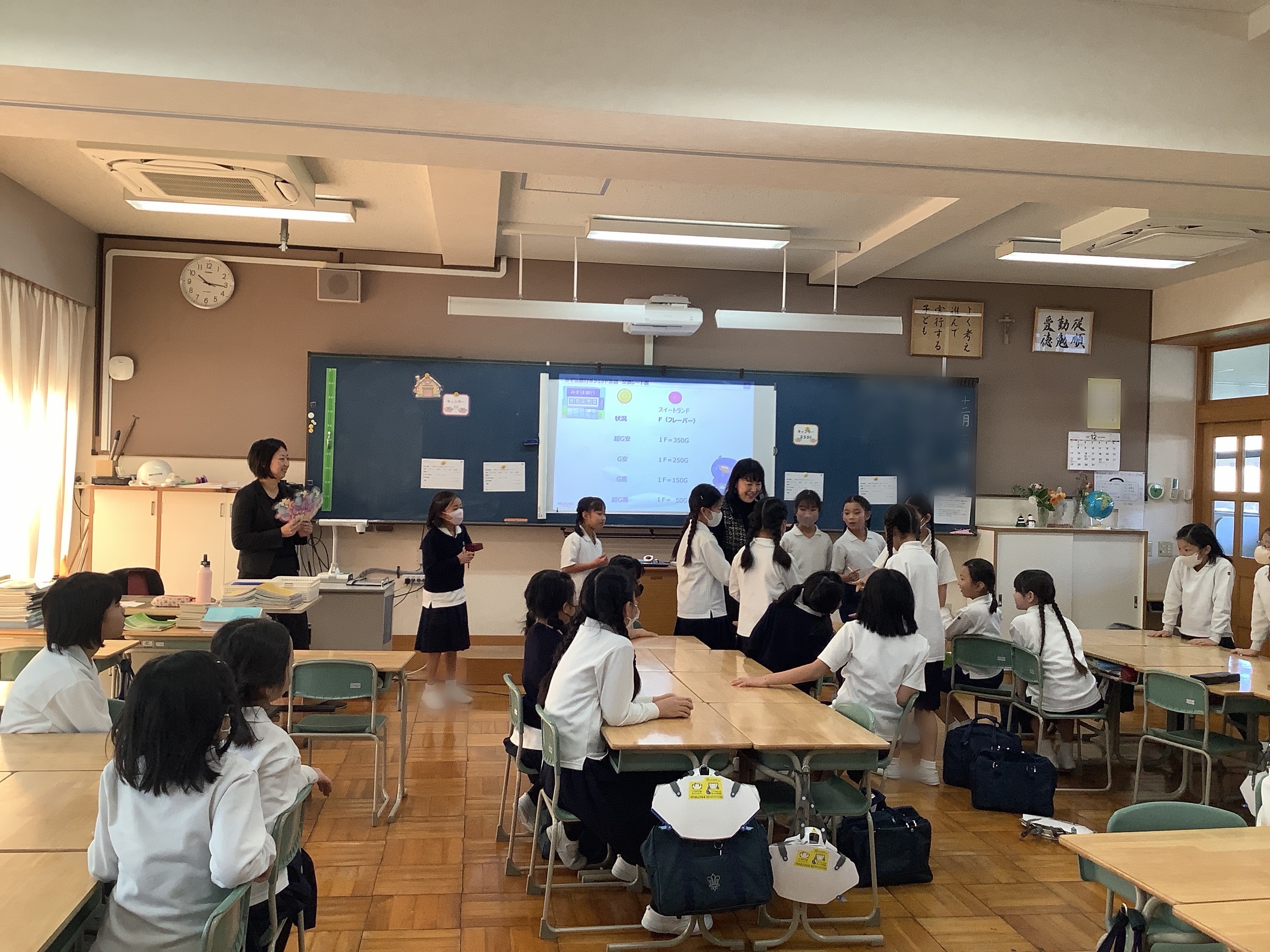 4年生は、みずほポシェットの方にお越しいただき、お金についての学習をしています。先日、今年度4回目の授業が行われました。