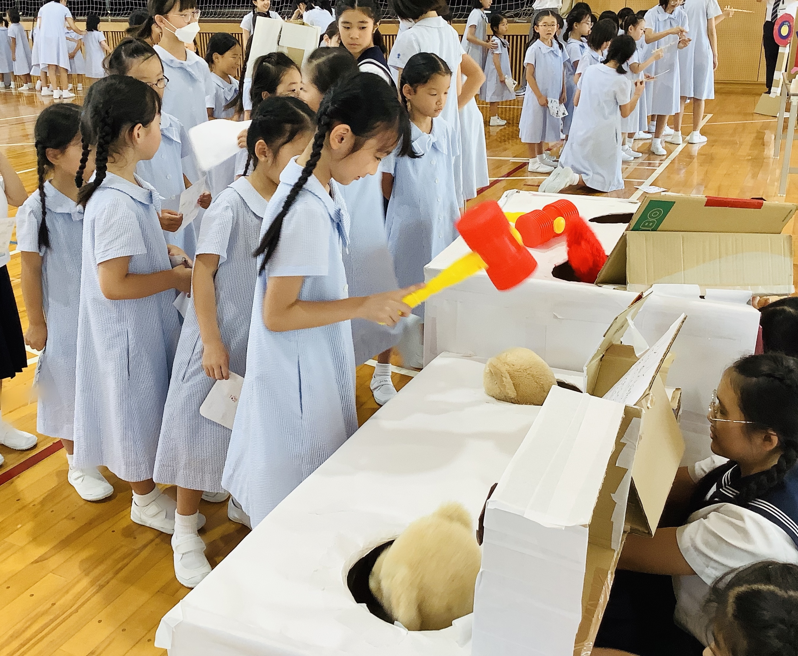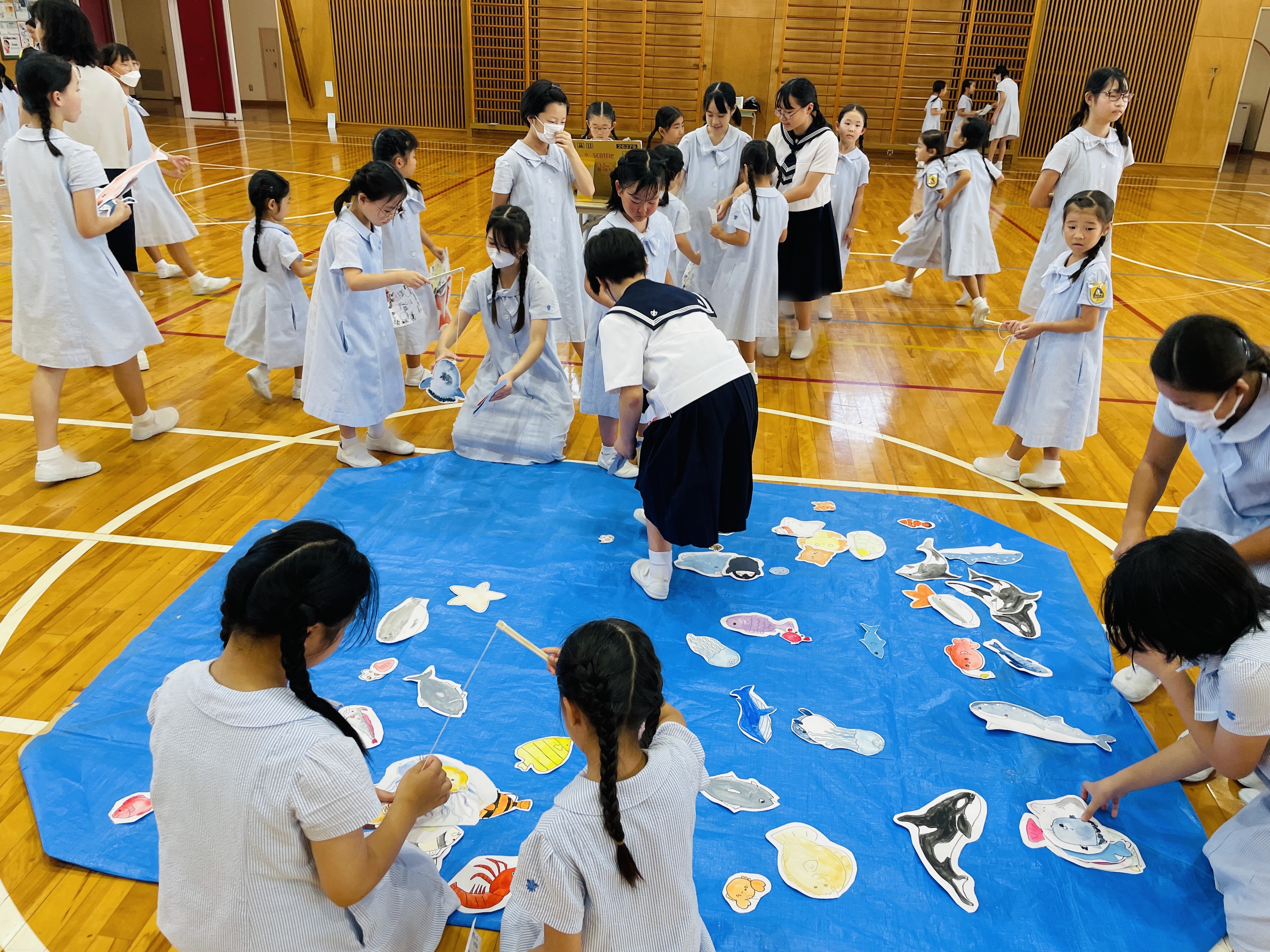 始業式の後、6年生が1年生のために夏祭りを開催しました。