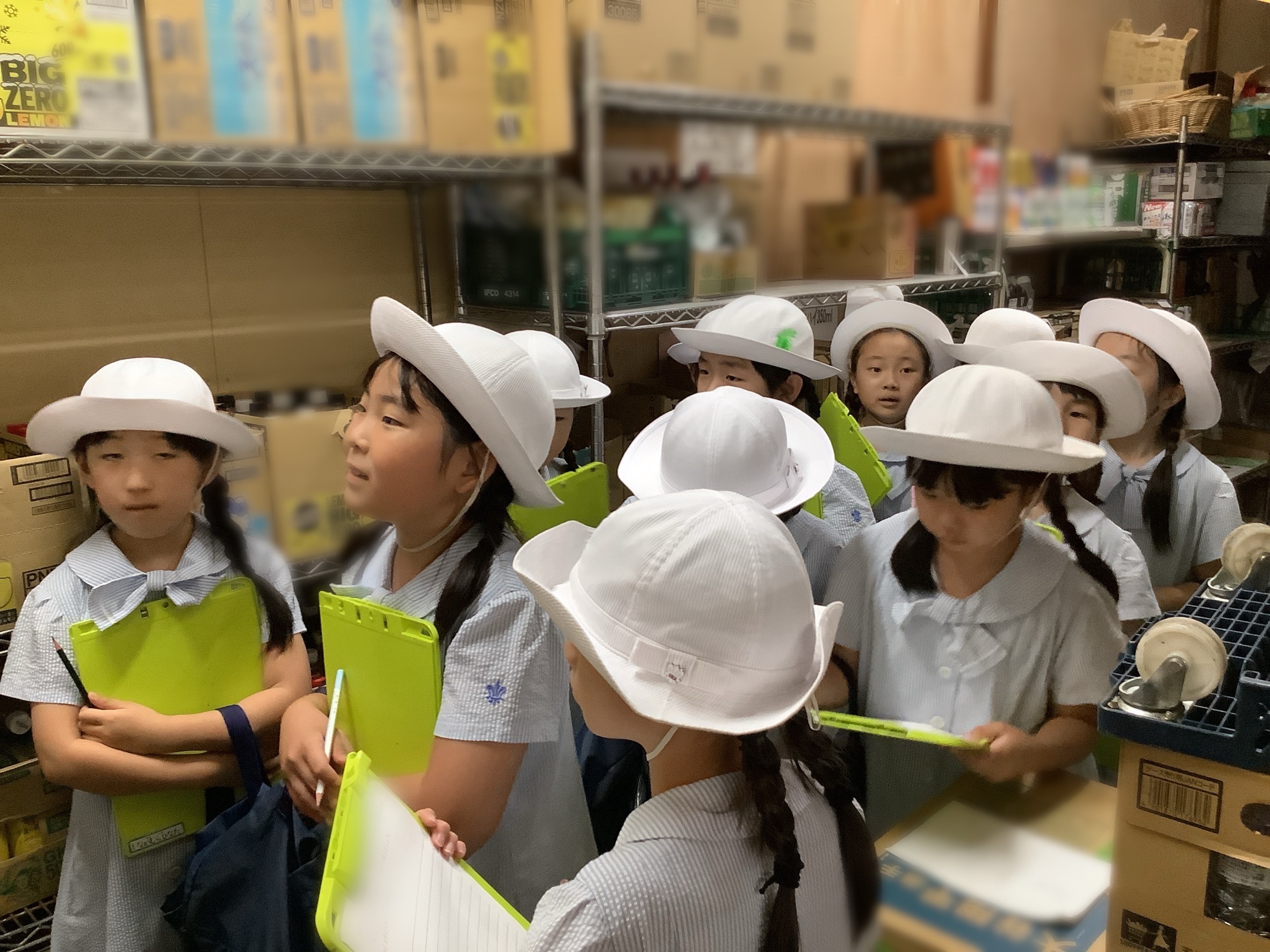学校生活 2025.09.22 3年生 社会科見学 3年生は、学校の近くのスーパーマーケットに、初めての社会科見学に行ってきました。 売り場・バックヤードを見学して、自分たちの生活を支えるスーパーマーケットの工夫を、数多く発見することができました。