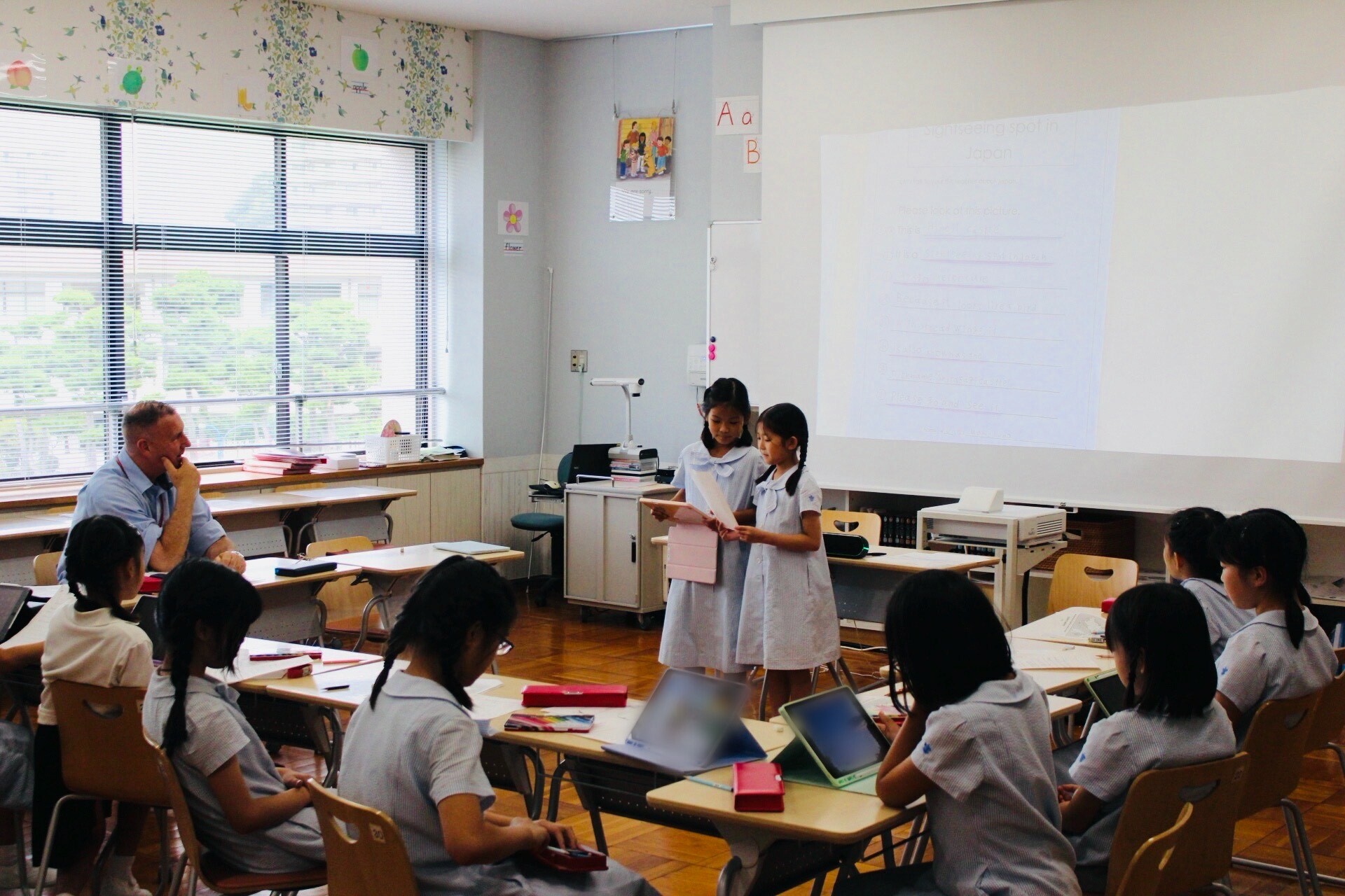 4年生は事前に日本の祭りや観光地のことを調べて、担当の先生方に日本の文化についての発表をしました。
