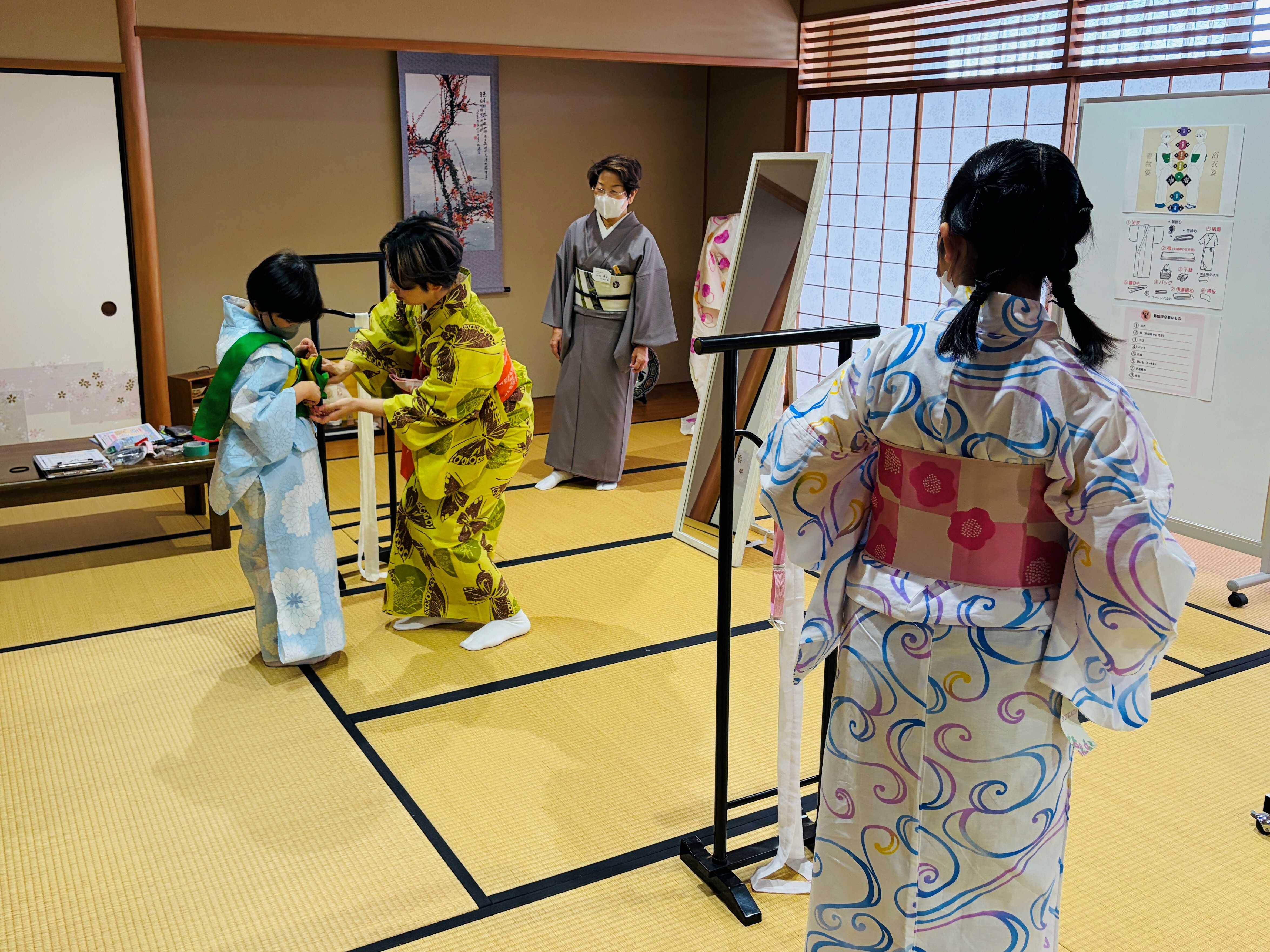 学校生活 2026.01.08 NEW! 冬の探究講座「浴衣にチャレンジ」 冬の探究講座「浴衣にチャレンジ」では、和室で浴衣の着付けを教えていただきました。 初めは、帯の結び方になかなか慣れない様子でしたが、繰り返し練習するうちに、みるみる上達! 素敵な浴衣姿を見せてくれました。 夏になったら、浴衣でお出かけするのが楽しみですね。
