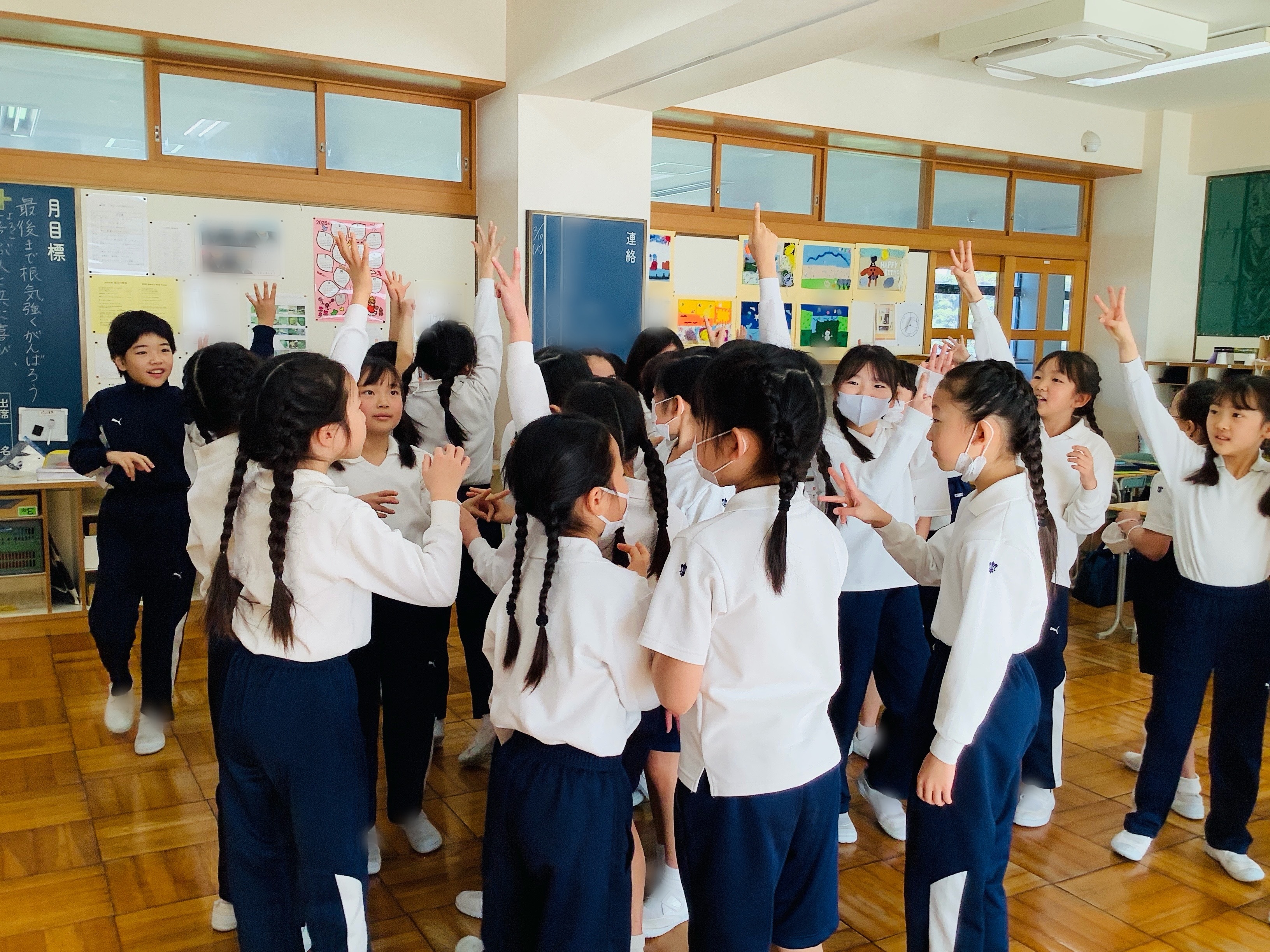 ジャンボじゃんけんやバースデーラインなどのゲームを通して、たくさんのコミュニケーションをとり、仲間との関わり方を考えました。