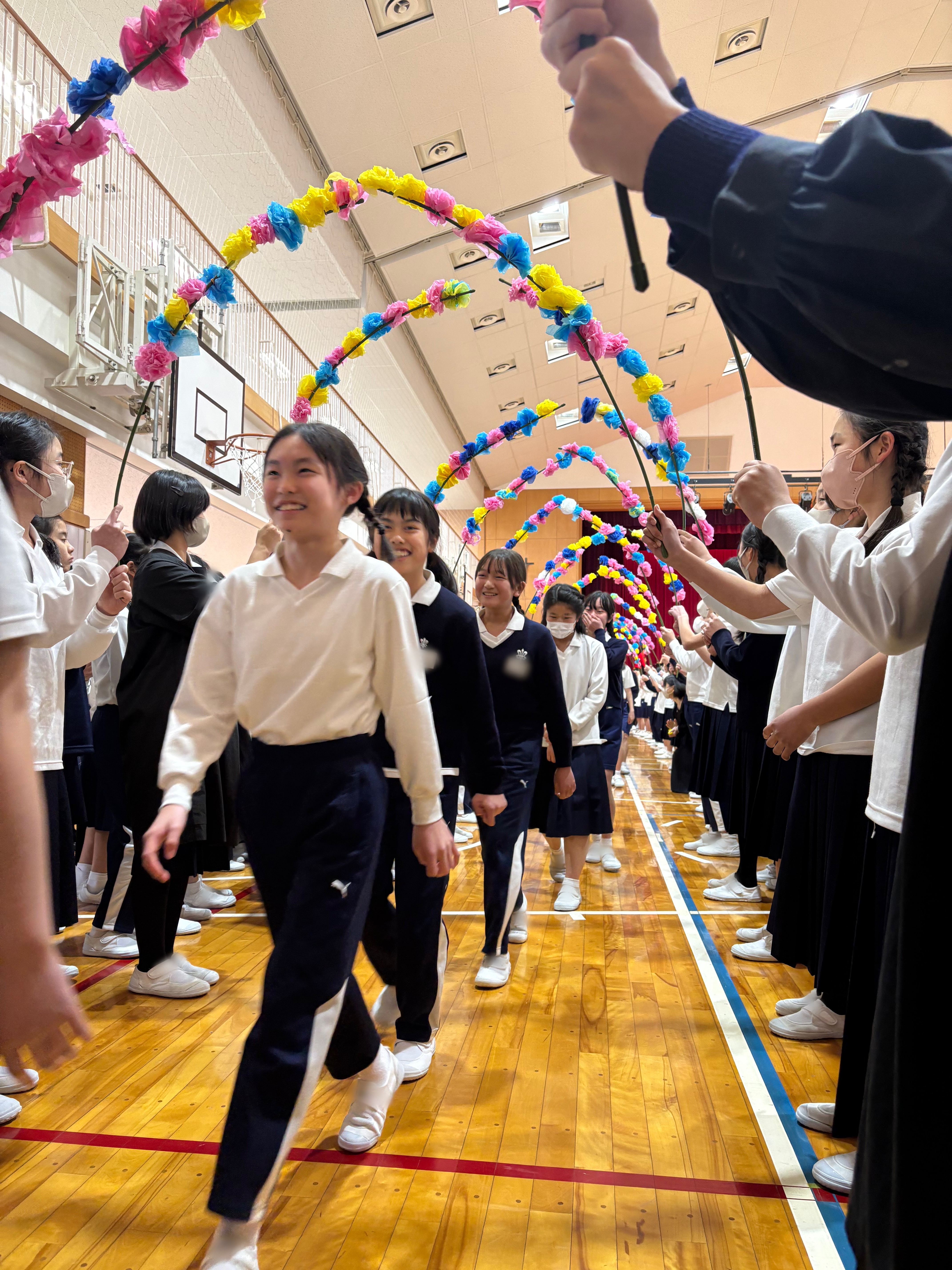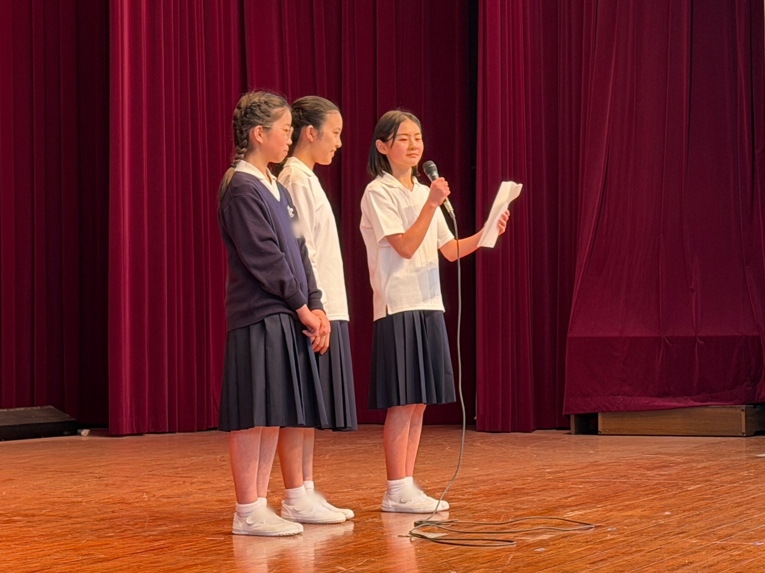 6年生からは、心を込めて作成した雑巾が贈呈され、1〜5年生からは感謝の気持ちを込めた歌のプレゼントが贈られました。